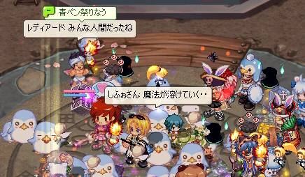 モンスターギルドで他のMobに看病され昏睡状態(?)の続く青ペンのお見舞いへ。